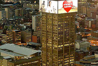 Johannesburgo tiene una nueva vista iluminada que proyecta desde su cielo, gracias del rascacielos de las torres de Absa, en medio de su distrito fina…